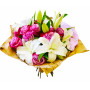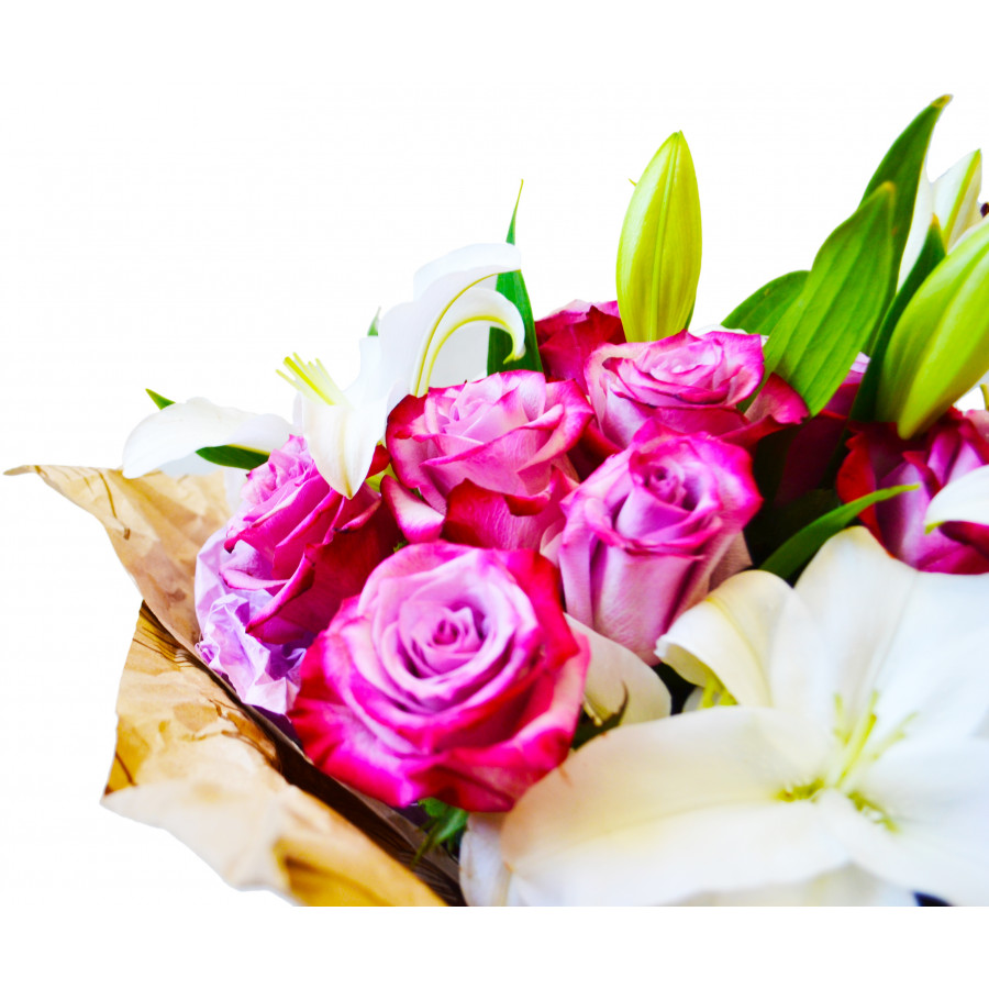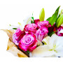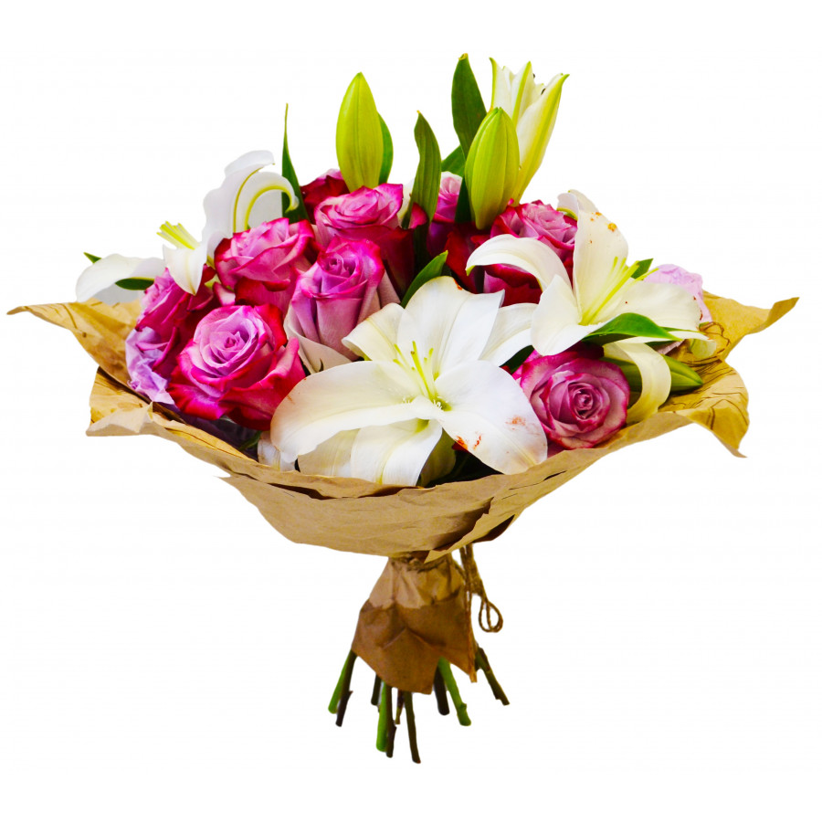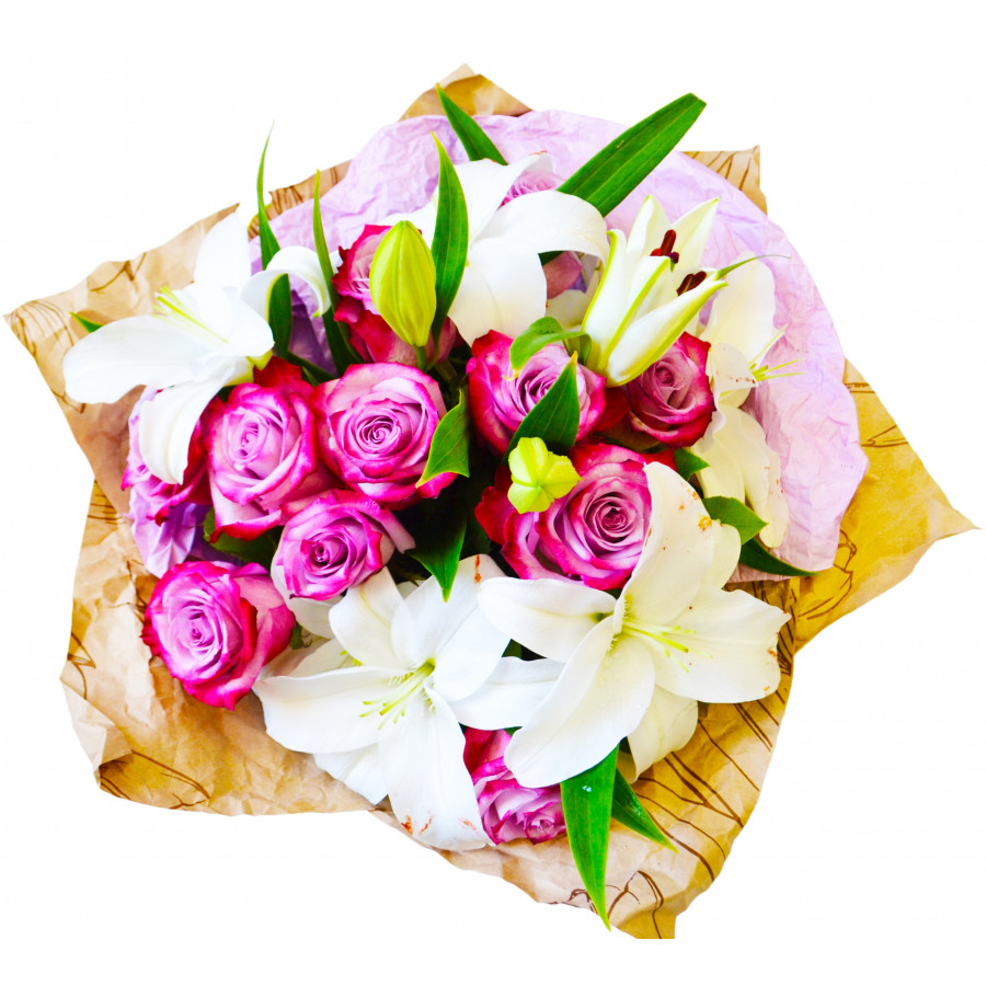 Сочетание ярких лиловых роз и белых крупных лилий в букете "Гармония" вместо иных слов передаст Ваши чувства получательнице - и роковую страсть, и нежную привязанность, и трепетную любовь. Такой подарок станет идеальным выбором на любой праздник и покорит сердце красавицы.