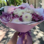 Букет из пионовидных роз, альстромерии и хризантем