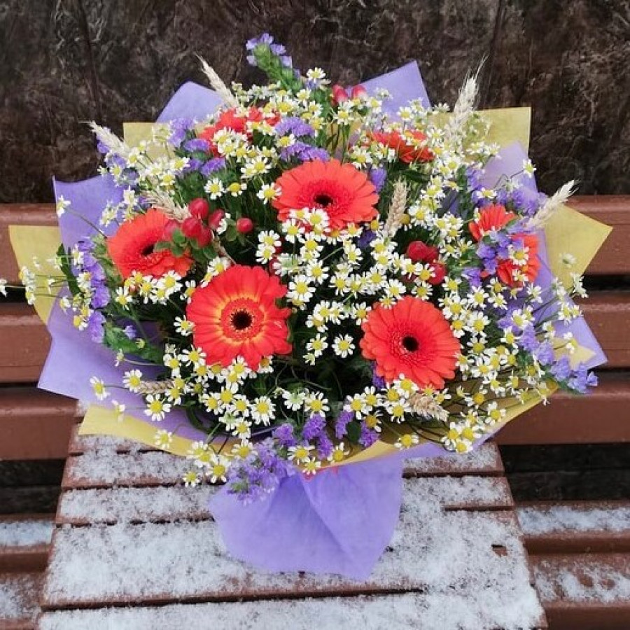 Перед выездом курьера пришлём фото свежесобранного букета, чтобы вы были спокойны